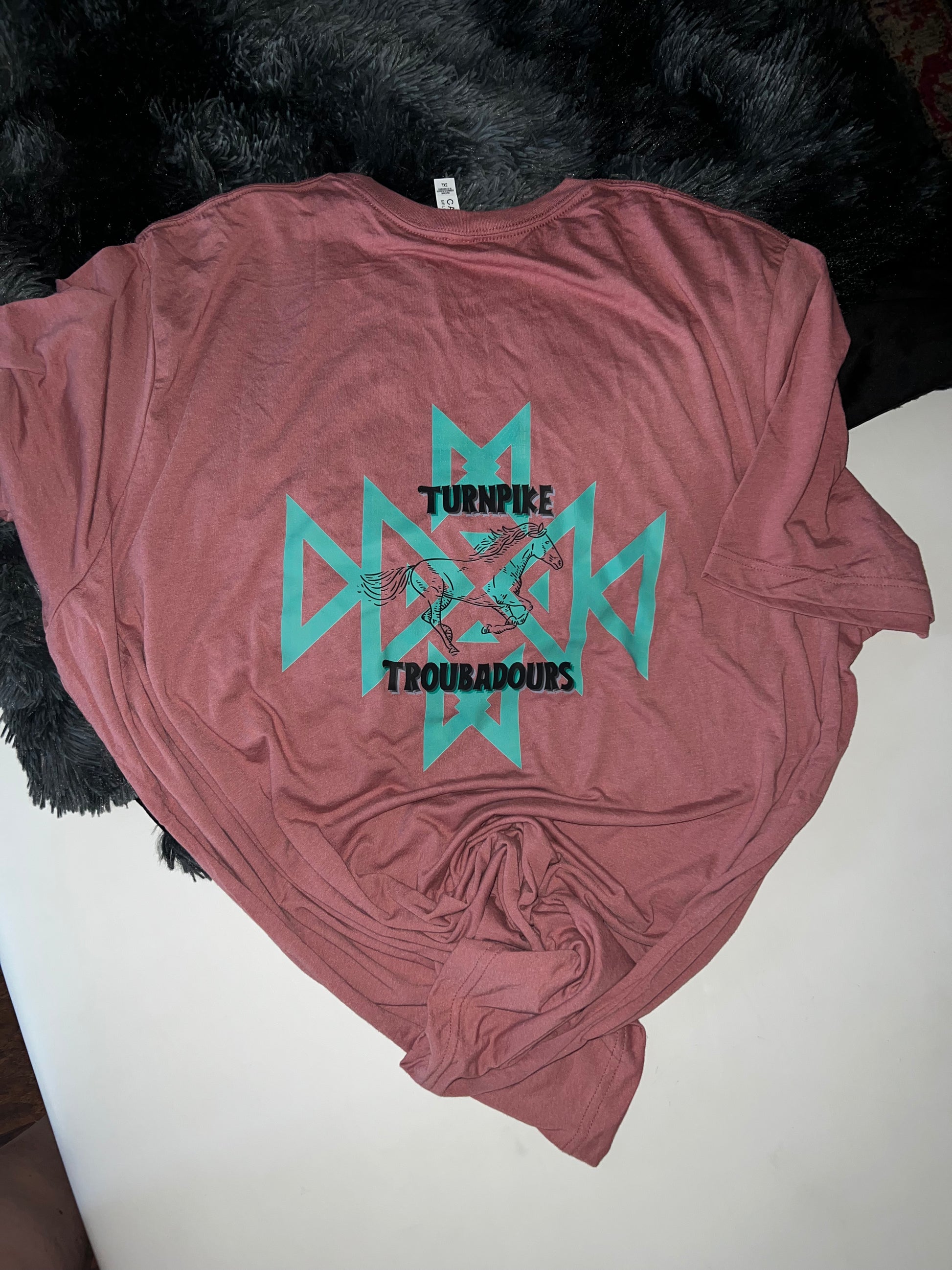BackWoodRedneck Original- Turnpike Troubadour tee with turquoise Aztec design. With BWR logo on front