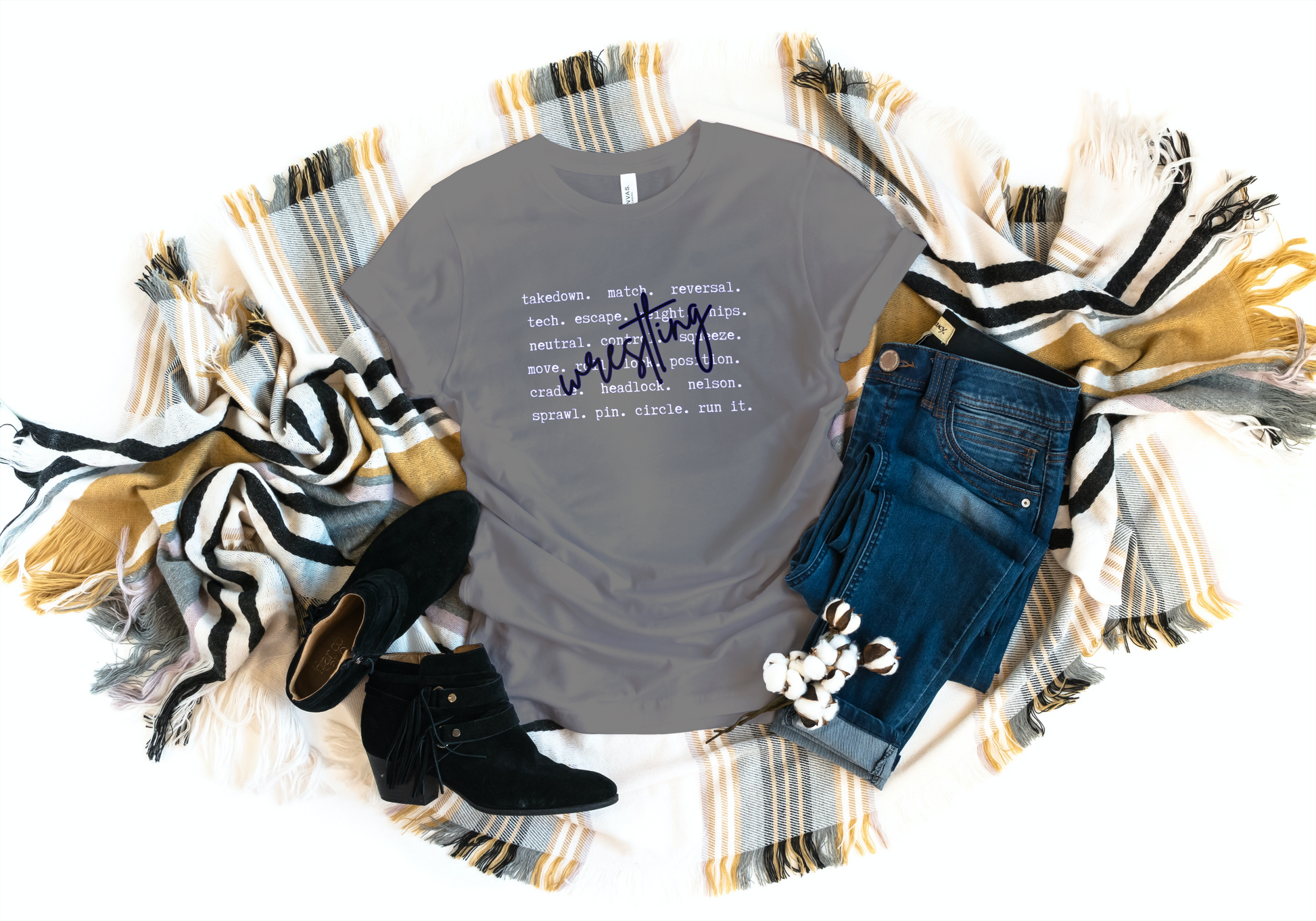 Shirt has some of the most common words that you here at any wrestling event, gym or practice anywhere at any time.